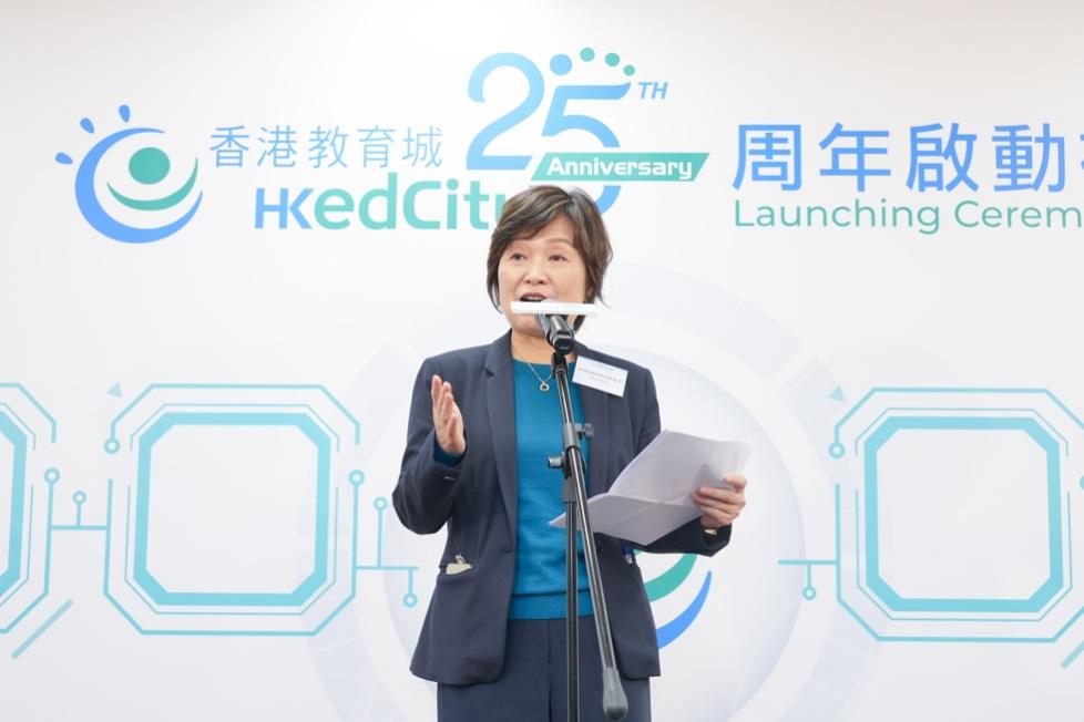 Choi Yuk Lin, Secretary for Education, delivers a speech acknowledging EdCity’s contributions over the past 25 years.